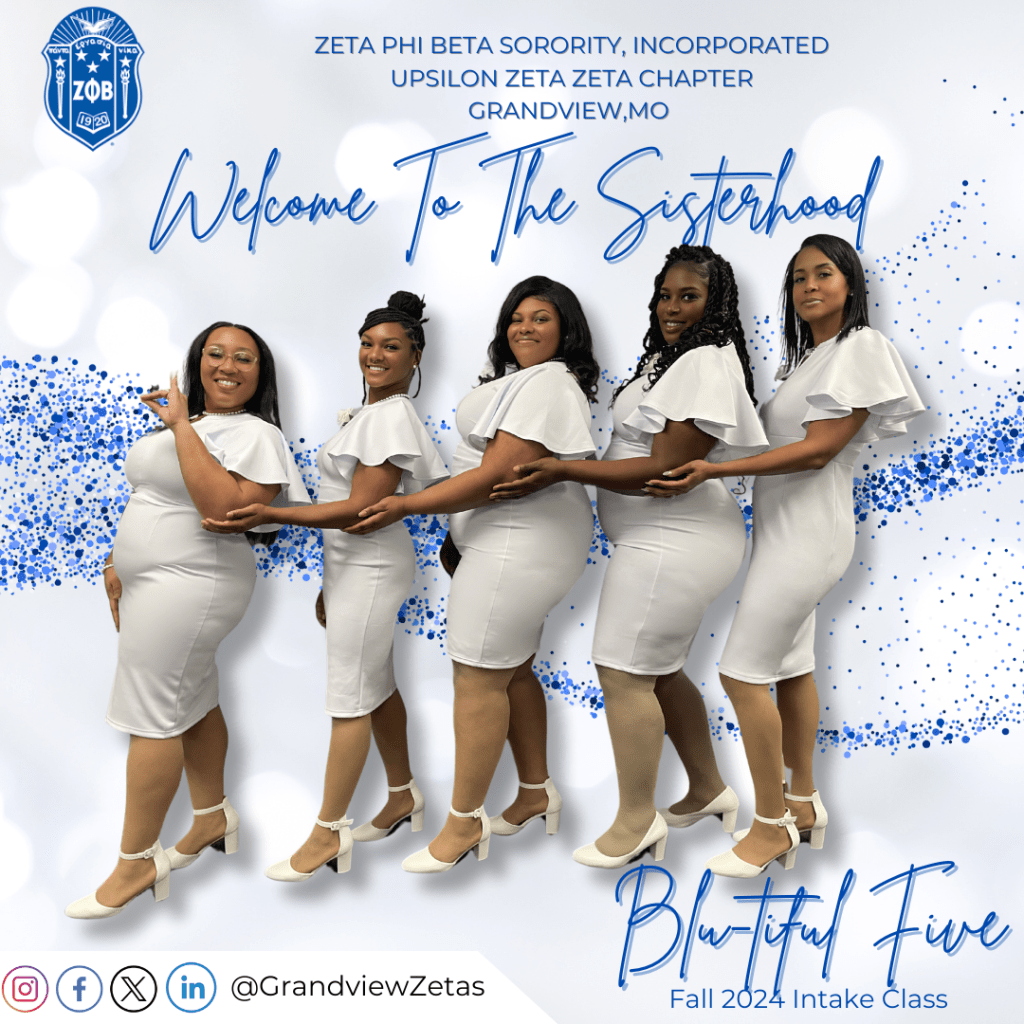 The Upsilon Zeta Zeta Chapter of Zeta Phi Beta Sorority, Incorporated is ecstatic to introduce the newest additions to our legacy—The Blu-tiful Five! These dynamic women have demonstrated unwavering commitment to the principles of Scholarship, Service, Sisterhood, and Finer Womanhood, and now, they stand proudly as part of our illustrious sisterhood.