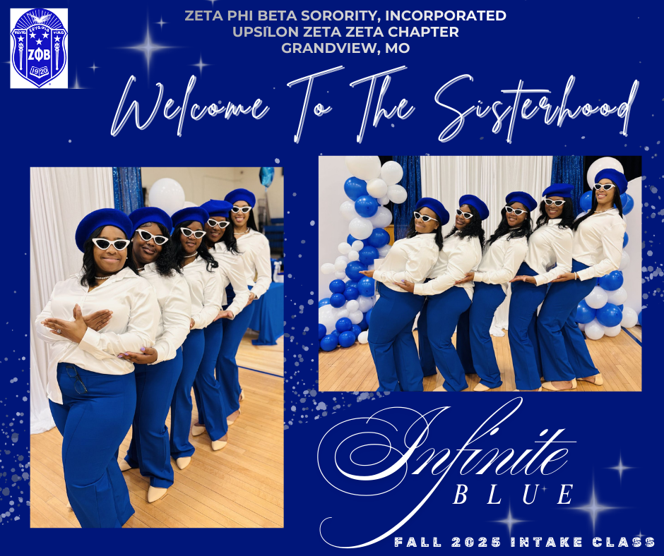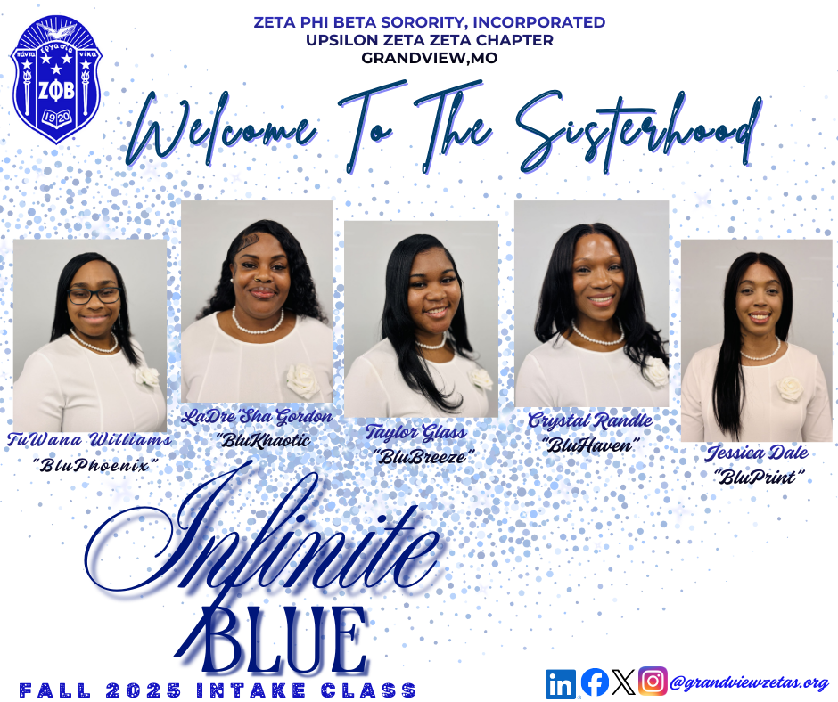 The Undeniably Unique , Upsilon Zeta Zeta Chapter of Zeta Phi Beta Sorority, Incorporated is estatic to introduce to you the 2025 Fall Intake Class – Infinite Blue. These 5 dynamic women have demonstrated unwavering commitment to the principles of Scholarship, Service, Sisterhood, and Finer Womanhood!