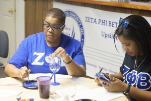 Members of Zeta Phi Beta Sorority and Phi Beta Sigma Fraternity celebrating Founders’ Day…